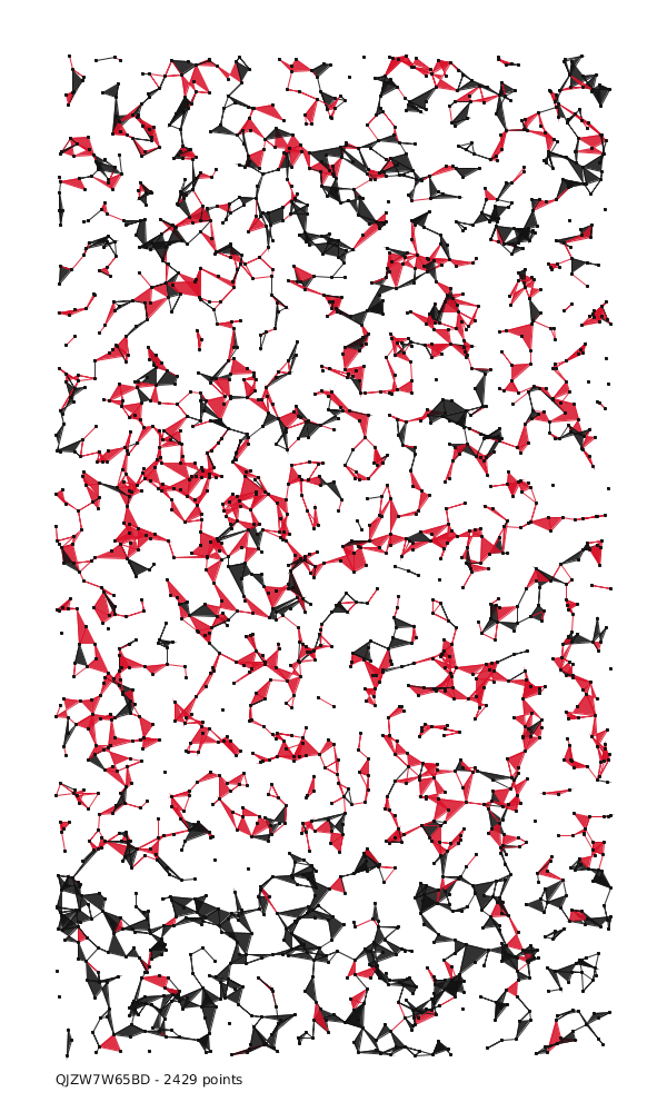 During PythonBrasil[14] at Natal, Rio Grande do Norte, Brazil, I've created a visual project using the participant's badges. Each badge had a 10 chars identification token and, using this token as an input to control the sketch randomness, I've generated one single image per badge.